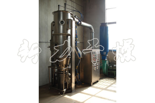 物料粉末粒子,在原料容器(流化床)中呈环形流化状态,受到经过净化后的加热空气预热和混合,将粘合剂溶液雾化喷入,使若干粒子聚集成含有粘合剂的团粒,由于热空气对物料的不断干燥,使团粒中水分蒸发,粘合剂凝固,此过程不断重复进行,形成理想的、均匀的多微孔球状颗粒。